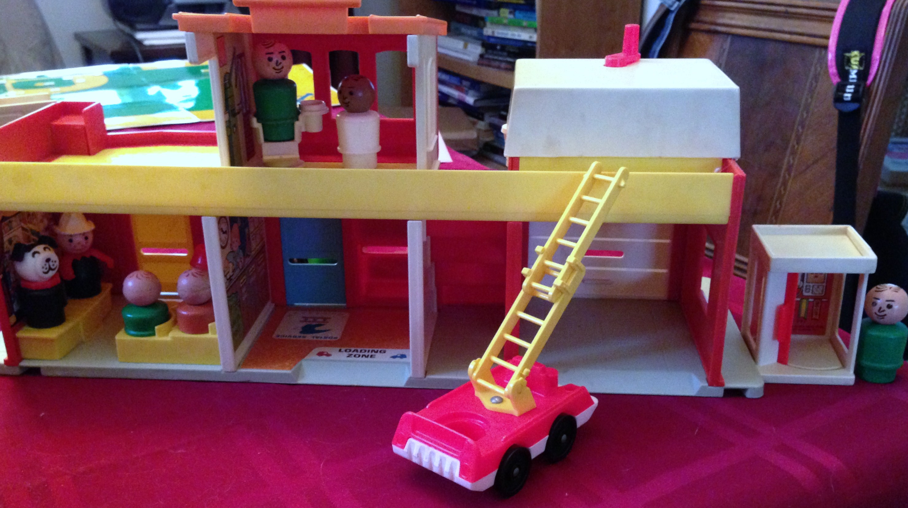 Published October 8, 2012 at 2959 × 1658 in It Takes a (Fisher Price Play Family) Village Fisher Price Village This half of the village includes the fire station, dentist’s office, and theater. ← Previous