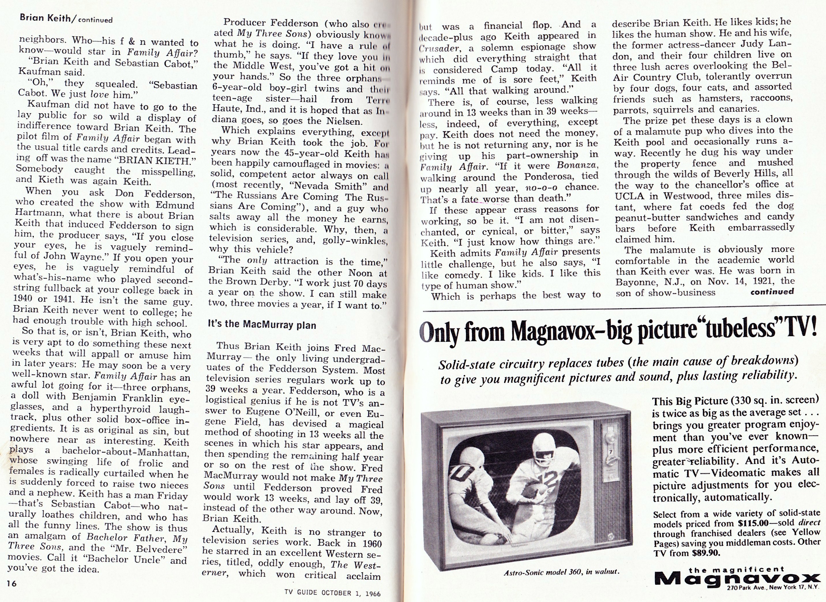 Published January 19, 2013 at 2864 × 2086 in Family Affair Friday(ish): Season 1, Episode 19, “Fancy Free,” 1/30/1967 tv guide october 1 1966 2 ← Previous