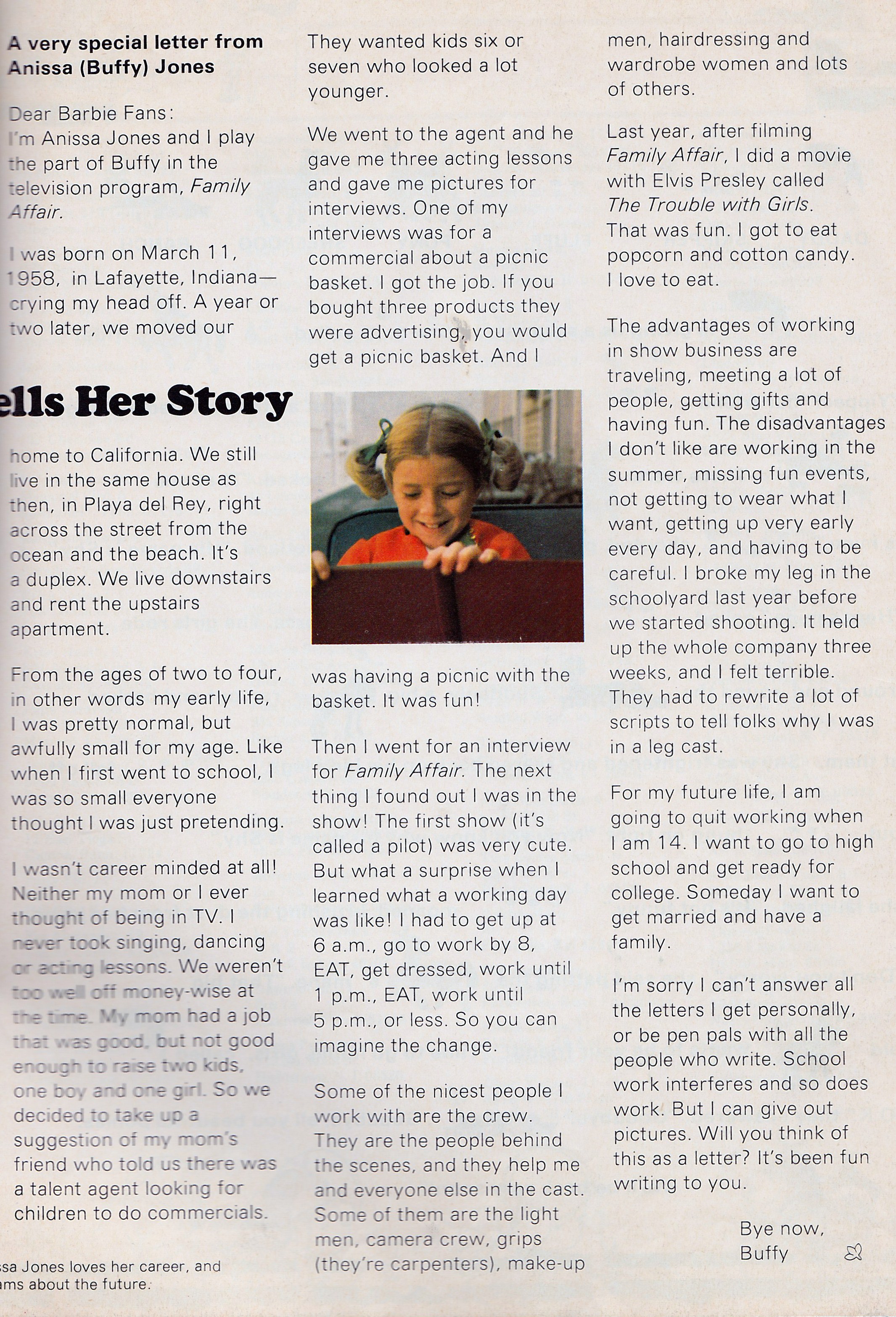 Published January 26, 2013 at 2131 × 3132 in Family Affair Friday: Season 1, Episode 20, “A Helping Hand,” 2/6/1967 Barbie Talk magazine Anissa Jones 2 ← Previous