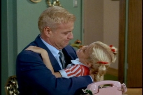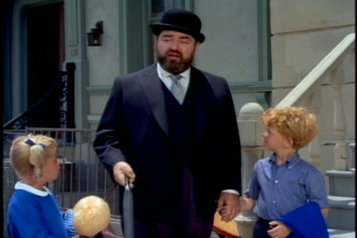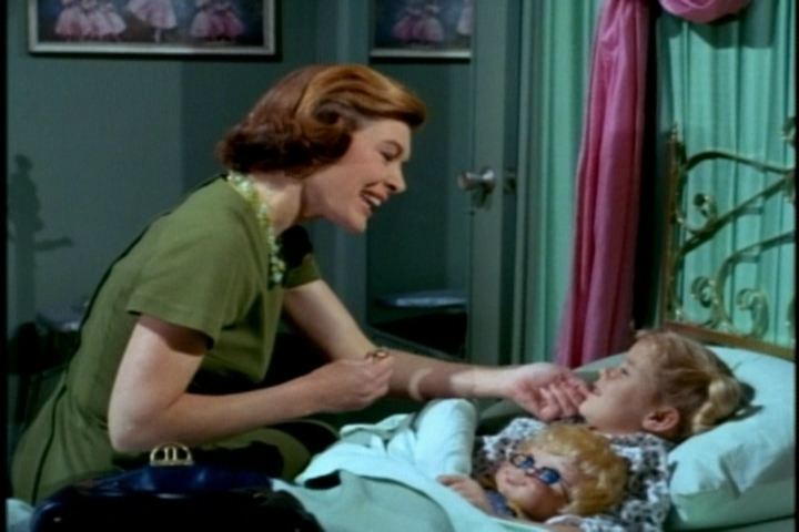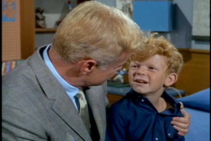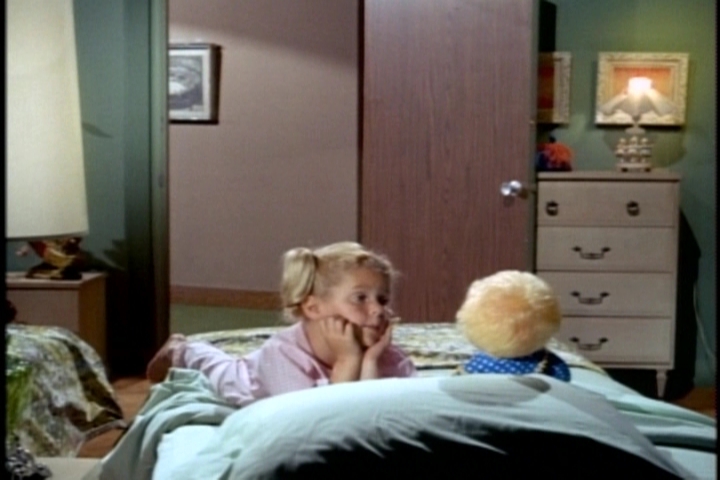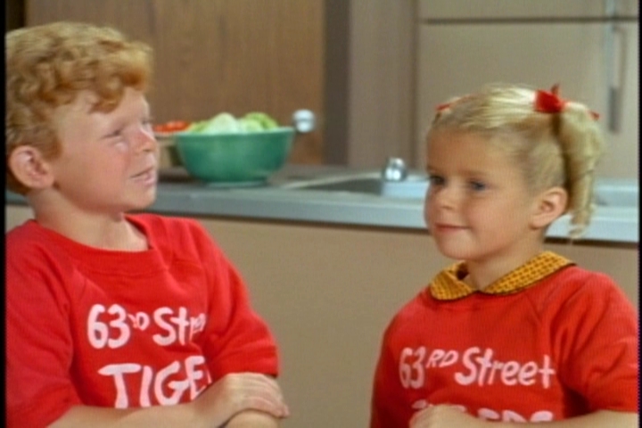 The length of Buffy’s pigtails varies from scene to scene–see below and note the length in relation to her ears. They are shorter in her scenes with Uncle Bill; Brian Keith’s abbreviated shooting schedule undoubtedly led to these scenes being shot at a time far removed from the episode’s other scenes.
