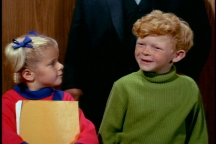 Buffy and Jody, firing off a series of questions that embarrass French, learn that Stanley is new to the building and getting ready to attend his first day at their school. They are pleased to learn that Stanley, like them, is in second grade. (Whew! We’ve emerged safely from last week’s time warp.)