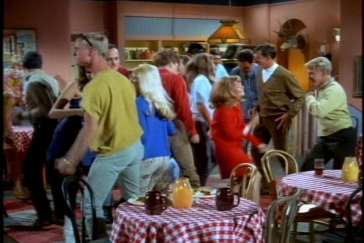 When Cissy and Randy stop dancing, French suggests going to get something to eat. The teens patiently explain to him that they are sitting in a restaurant.