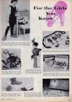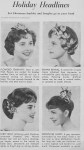 No teen magazine is complete without a quiz. This one on holiday fashion is pretty tough. I’ve learned that full-length crinolines snag stockings about the ankles, you should never wear more than 3 points of jewelry at one time, and that “Christmas is a festive time and your family deserves your very best. Rise to the occasion by wearing a pretty and spanking clean dress or skirt and blouse.” (Well, I did intend to wear something clean.)