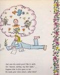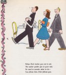 “Your best policy is always to accept the fact that (a boy) is a powerful giant, not matter what you may think. If you are able to beat him at tennis or golf or swimming, either don’t beat him or else beat him but tell him you know he’s not really trying or is just letting you win out of politeness. Let him maintain his powerful, caveman role.”